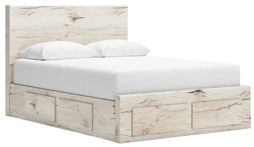 Includes panel headboard, storage footboard, 2 under bed storage units and roll slats