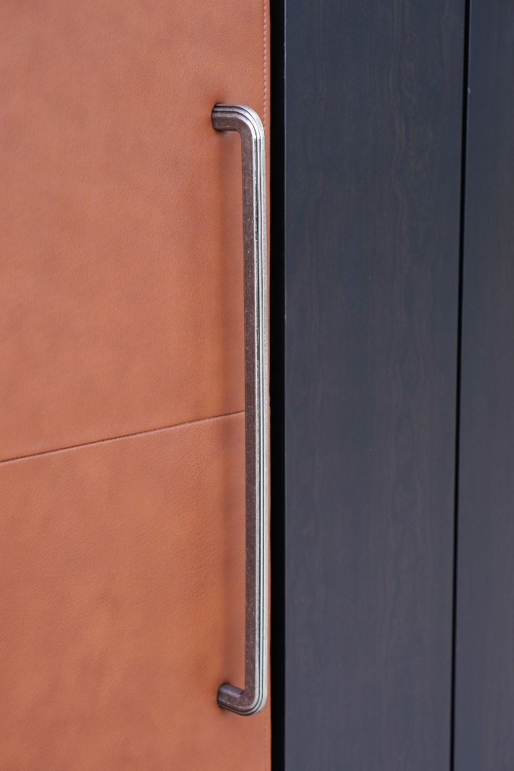 Cuts leather panels complement JennAir® column refrigeration, adding further depth and intrigue to each piece.