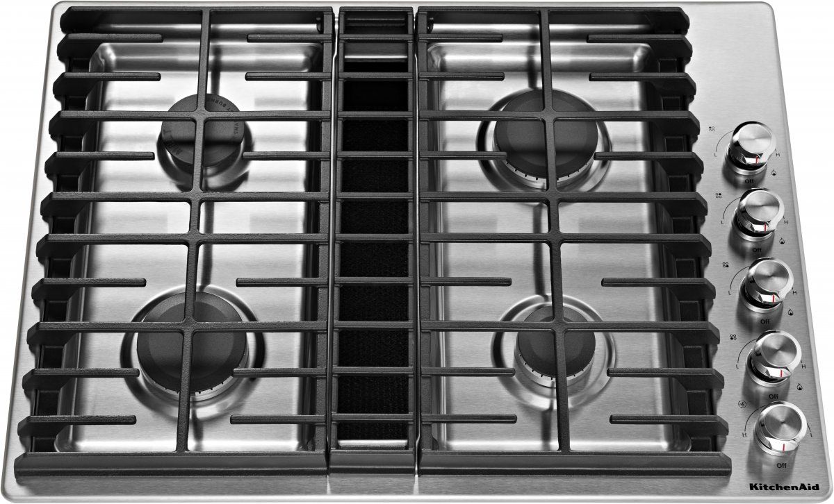 This 30” gas cooktop includes Downdraft, an integrated ventilation system that doesn’t require a separate hood. The cooktop features a 17K BTU professional burner to achieve both high heat needed for searing and low simmer settings. The 5K BTU Even-Heat™ Simmer Burner enables precise simmering and melting while the 300 CFM exhaust rating means the venting can handle it all.Read More