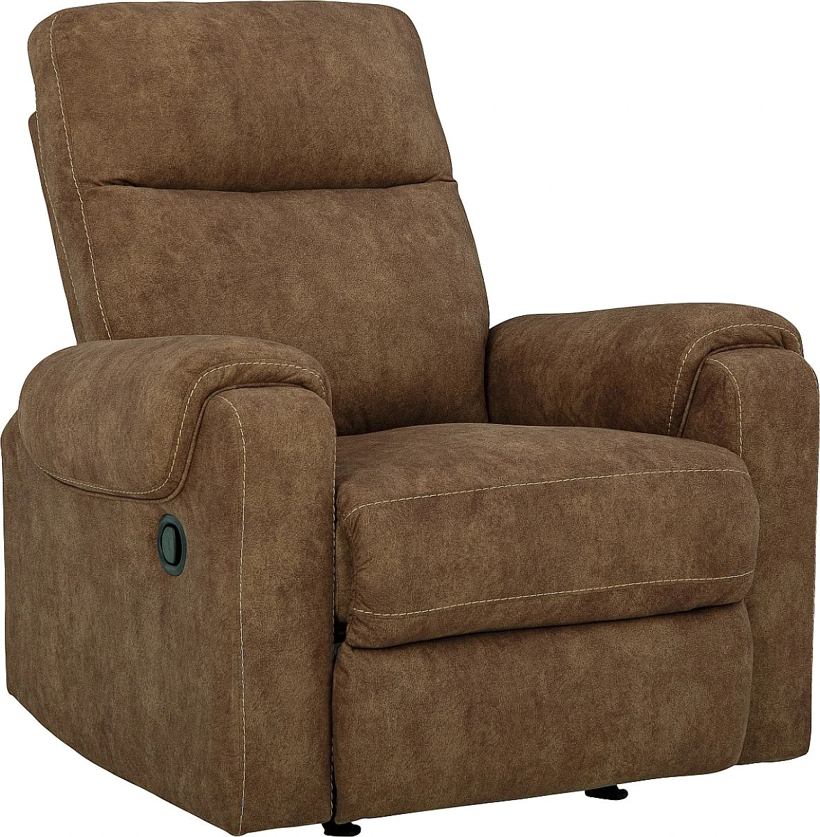 This rocker recliner is your best shot for comfort and total relaxation. Its super soft faux leather, contemporary bustle back and contrast stitching team up for a big win with most any color scheme and room decor. With the pull tab reclining motion, you can relax completely in a fully reclined position.Read More