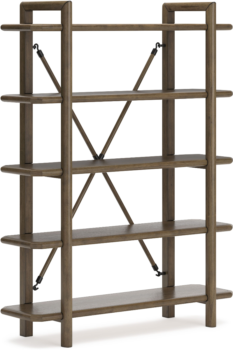 The Roanhowe 71" brown bookcase from Signature Design by Ashley® offers a stylish and functional storage solution for your home. Its rich brown finish exudes elegance, while the sturdy construction provides ample space for books, decor, or collectibles with its five shelves, making it a versatile and timeless addition to any room.Read More