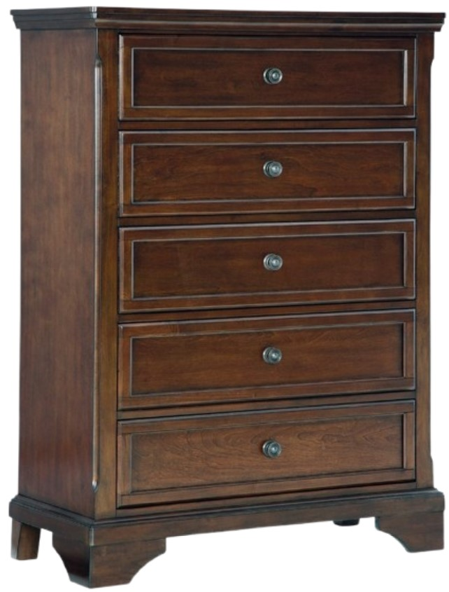 The traditional design of this chest of drawers has a timeless look that adds visual appeal to your bedroom, while its functionalism is equally impressive. There is lots of room for clothes and other essentials in five drawers with a warm brown cherry finish.Read More